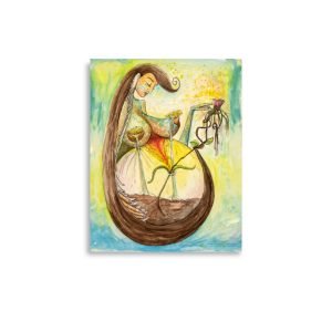 Within her womb, she carries the four elements—Water, Earth, Fire, and Air—each one essential, each one alive. Together, they move through her, sustaining growth, shaping landscapes, and breathing vitality into all that exists.